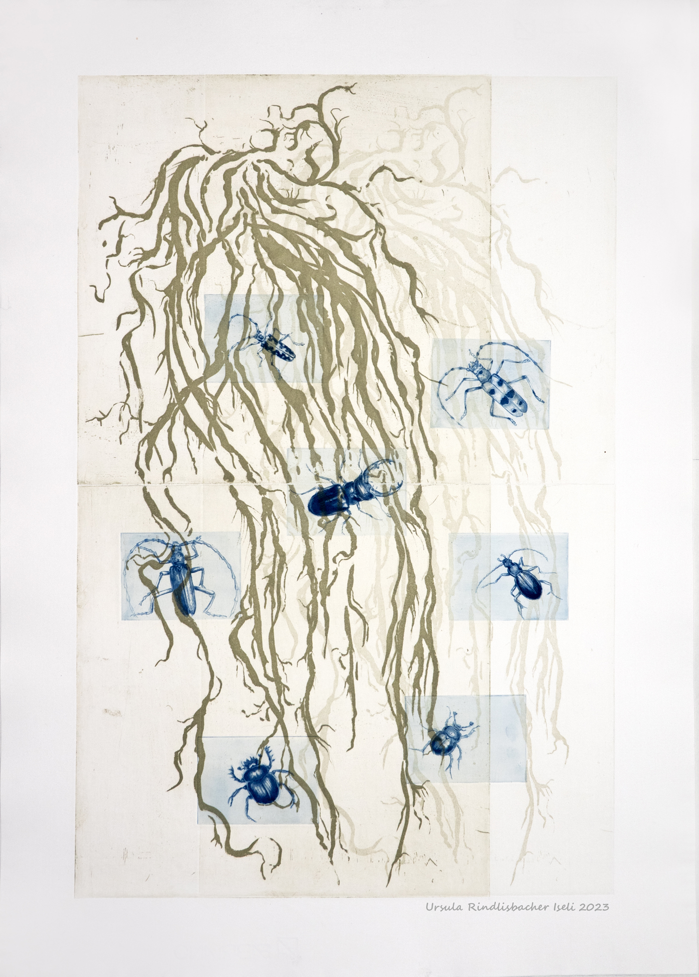 Ursula Rindlisbacher Iseli wurde 1959 in Bern (Schweiz) geboren. Von 1986 bis 2016 nahm sie regelmäßig Unterricht an der Kunstgewerbeschule (heute Schule für Gestaltung Bern) in Zeichen-, Mal- und Drucktechniken sowie verschiedenen Themenbereichen bei renommierten Künstler*innen. Kenntnisse im Bereich Tiefdruck erwarb sie sich bei Ursula Jakob und Patricia Schneider, die Holzschnitttechnik erlernte sie bei In Ho Baik. Im Fach «Drucken und Gestalten» machte sie ihren Abschluss 2016 an der Schule für Gestaltung Bern. Wie schon ihre künstlerische Ausbildung erahnen lässt, erstreckt sich ihr Oeuvre auch über die beiden Bereiche Grafik und Malerei. Trotz der unterschiedlichen Techniken sind die Ausgangsbasis und Motivation für die Künstlerin immer die gleiche: Am Anfang steht stets die Faszination eines Augenblicks und das Staunen über Natur oder das bunte Treiben der Menschen. Die Hommage an den besonderen Moment, der im Schattenspiel, in Rhythmen, Formen und Klängen oszilliert, materialisiert sich dann in ihren Werken. Rindlisbacher Iseli spürt dabei immer den Details und Spannungen nach: Zwar verleiht sie mit ihrem Bild der Sache, die sie darstellt, etwas Allgemeingültiges, da sie das Typische eines Käfers, eines Vogels oder einer Marktszene festhält. Jedoch ist sie sich bewusst, dass nur die Einzigartigkeit der Situation und Singularität der Dinge ihr überhaupt ermöglichen, irgendetwas wahrzunehmen. Etwas vom Moment der Begegnung bleibt so beim Malen und Drucken lebendig und erhalten. Es zieht sich wie ein roter Faden durch die Entstehungsgeschichte eines jeden Bilder. Das Erleben des Besonderen, welches die Kunst versteht, in diesem Spannungsverhältnis von Singularität und Universalität darzustellen, ist gleichzeitig auch ein Erleben des Natürlichen im Bildnerischen. Diese Rätselhaftigkeit als Form des Staunens in die Welt hinauszutragen, gleichzeitig offen zu bleiben für Neues und obendrein die Freude am Detail zu behalten, ist Anliegen der künstlerischen Arbeit von Ursula Rindlisbacher Iseli. Die Künstlerin stellte bislang vorwiegend in der Schweiz aus und wird seit 2026 von der LDXArt Gallery international vertreten.